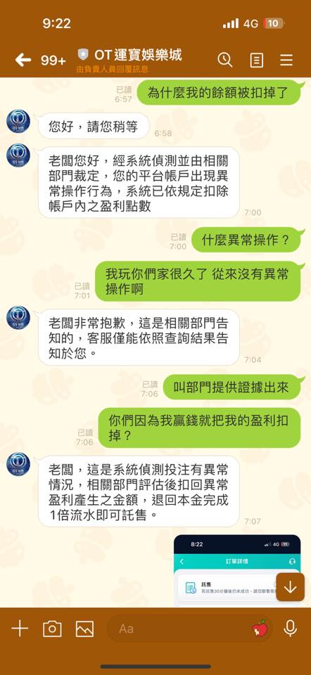 要出金的時,擅自把我的盈利扣掉,只退回本金然後就只丟了一句系統偵測投注