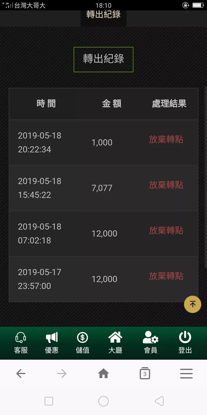 以下圖片是我提領 過程 他們會一直幫我放棄轉點 ,詢問客服 都會說查詢中,然後最後都放棄轉點