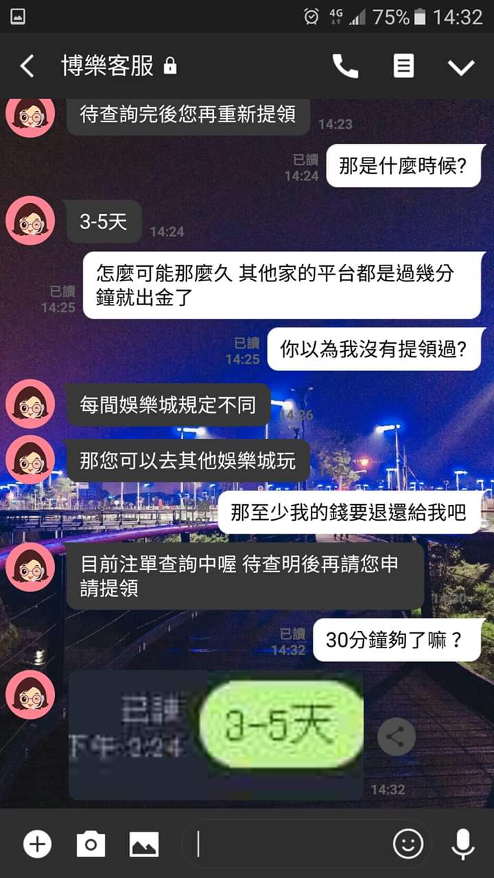 http://zx008.fafa88.tw/ 博樂這間娛樂城平台 不出金 讓我等待七天後 封鎖我帳號 只能輸錢 不能贏錢
