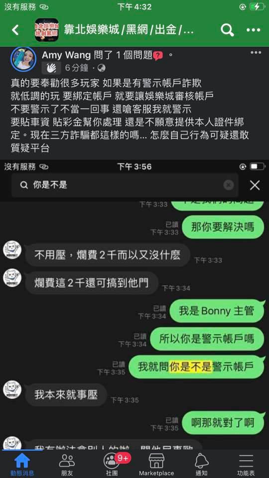 過年即將到來,再提醒各位朋友一次,娛樂城詐騙的事情層出不窮,不出金的理由也千奇百種,不外乎你的注單有問題、風控管理不出金、先繳納多少才能領錢,我只想說妳們這些人真的生兒子沒屁眼,這種鬼話都講得出來,以下是金合發娛樂城自稱美女代理的荒唐行為,之前還有87再說也許妳注單有問題啊這種鬼話,版是妳們開的..我能下的也是妳們開的,贏了就說注單有問題,請問提問的人腦袋是撞到嗎??? 雖然一看也知道是她請來的打手,別丟臉秀下線了~~