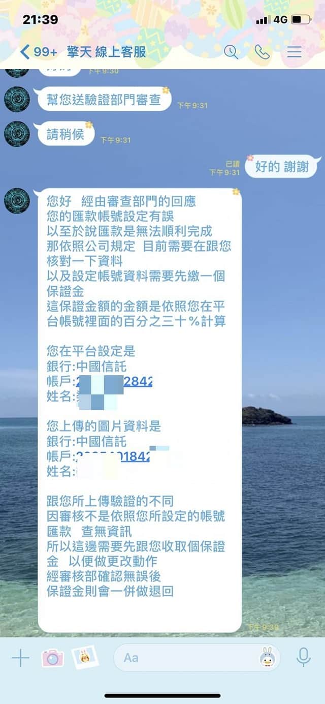 結果我提款時帳號被鎖住要付一萬凍結