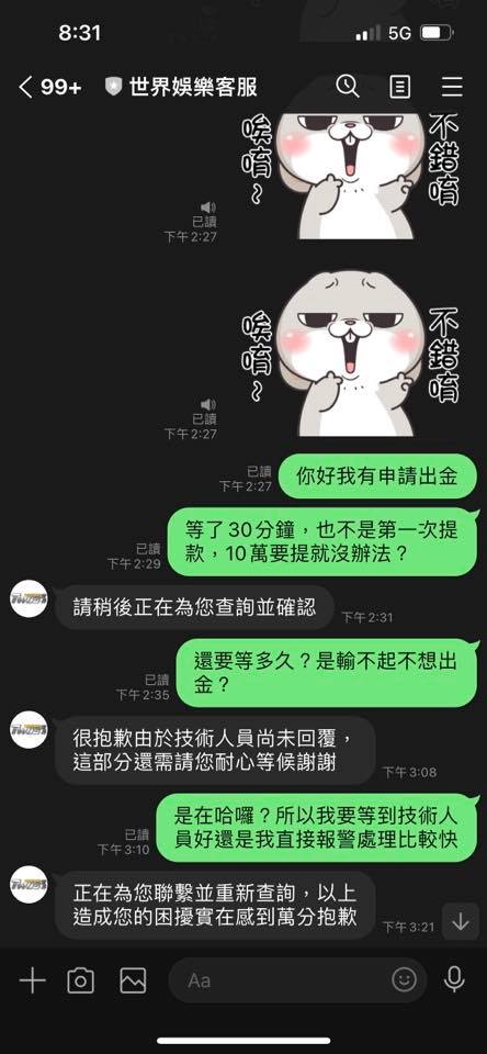前幾天在世界娛樂場下注 起床後發現有人盜用帳號