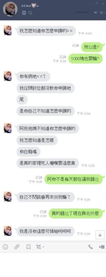 現在又換綠色衣服的大頭貼了 不是心虛是什麼? 還硬說我沒儲值? 話術可不可以專業一點?