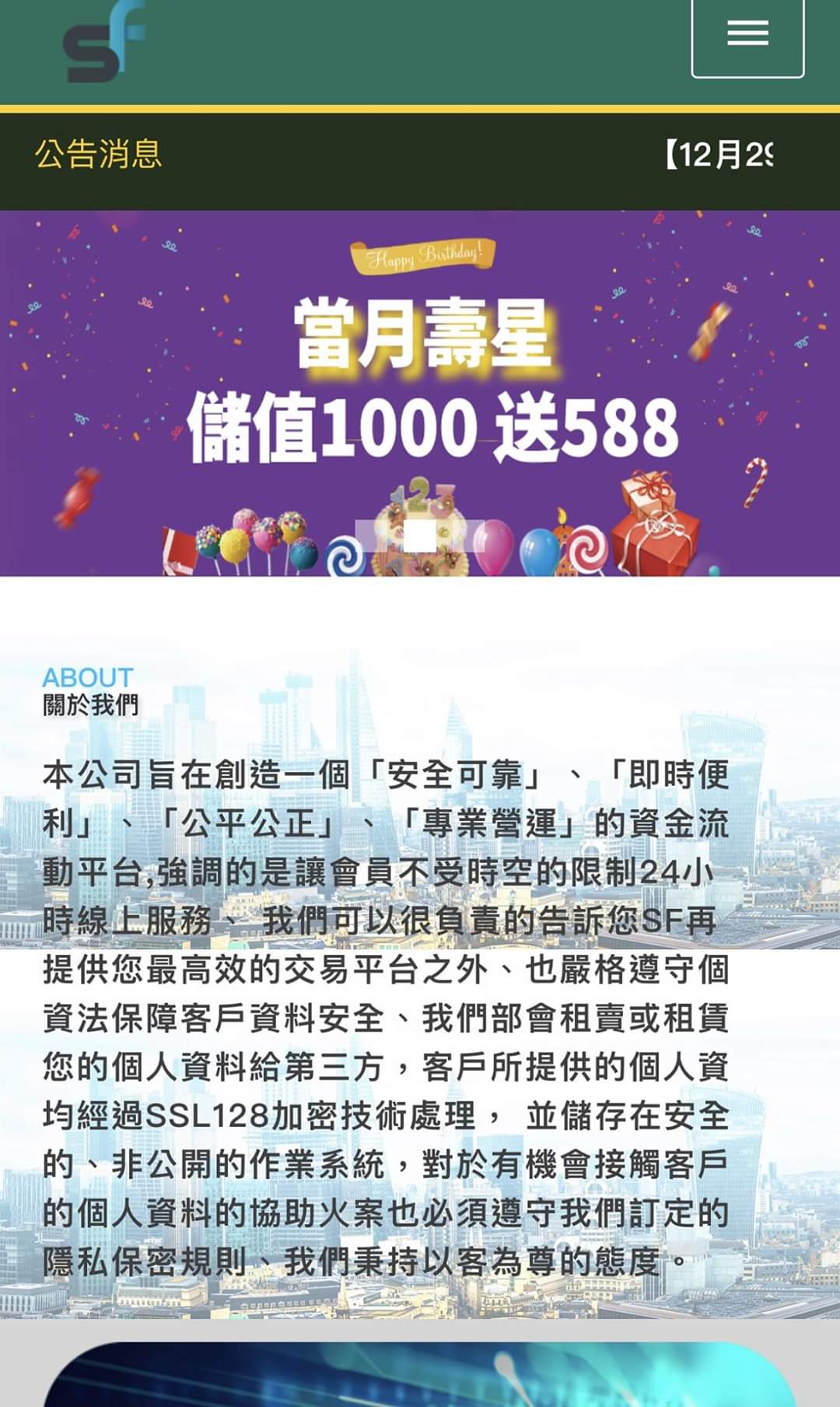 原本可以正常登入。在詢問客服為何都出金ㄕ敗後 被告ㄓ查無此帳號。明明還在登入中。 隔天網站關閉。改網址和首頁型態。原本的帳號再也無法登入。 黑網不會出